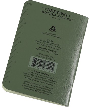 Linjert notatblokk med vannfast papir. Sikrer dine feltnotater fra å bli ødelagt i regn eller fuktighet.