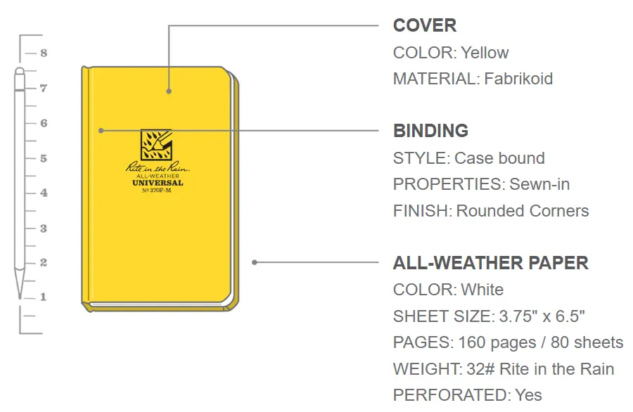 Notatbok med vannfast papir. Sikrer dine feltnotater fra å bli ødelagt i regn eller fuktighet.