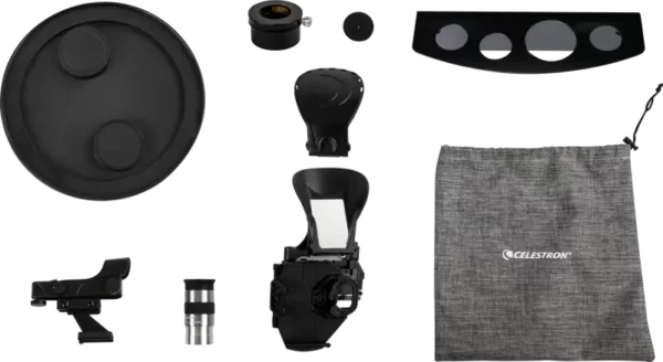 - Inkluderer et 25 mm Plössl-okular, en 2” Crayford-fokuser, StarSense dokkingstasjon til smarttelefon, en Starpointer™ red dot findercope, et okularstativ og et kollimeringsverktøy.