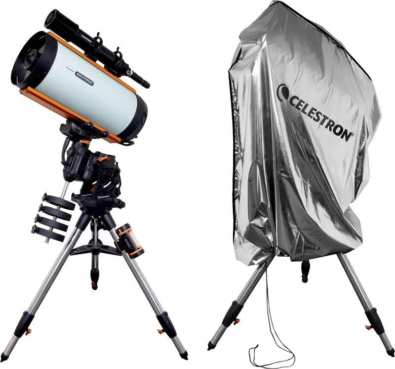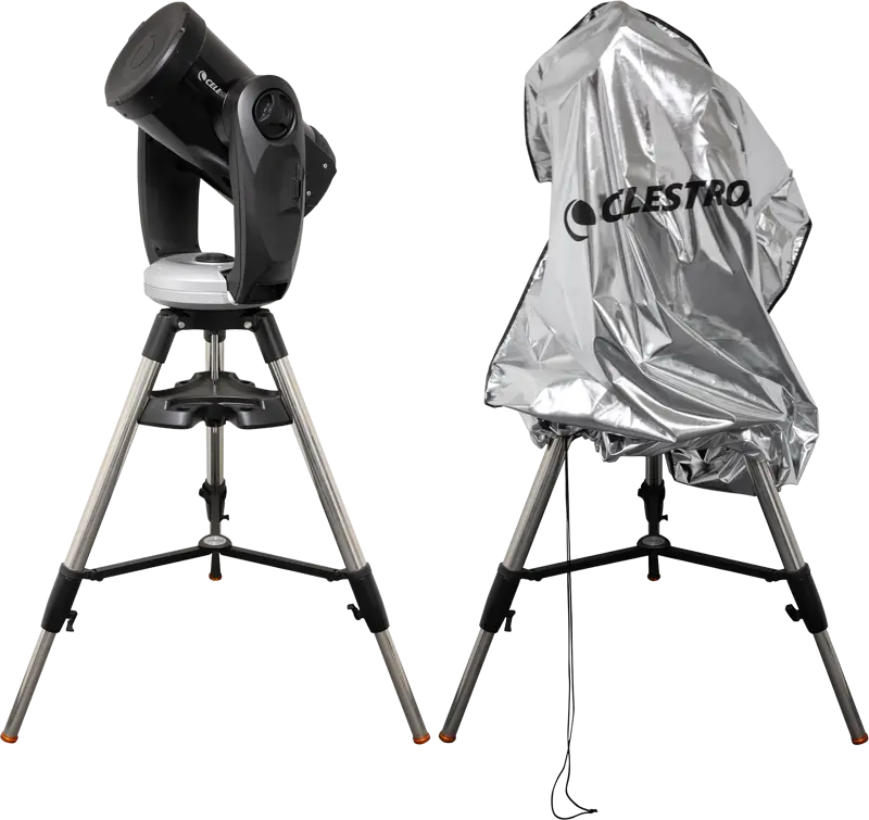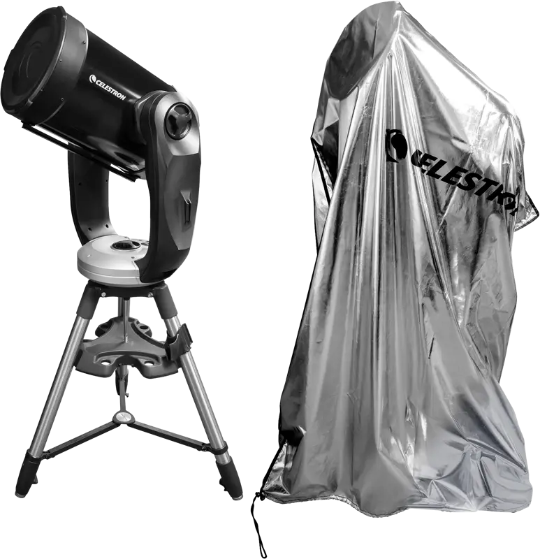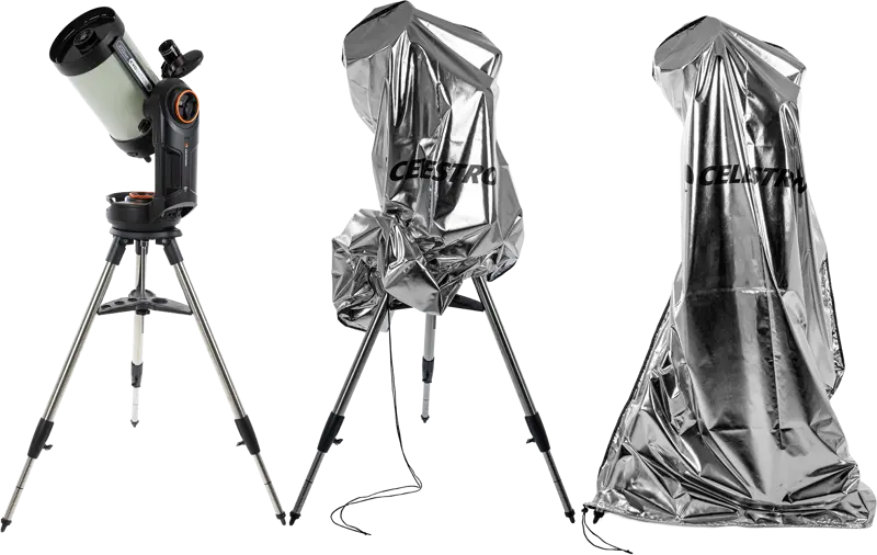 Dekselet måler 1470 mm x 1795 mm, og passer til de fleste Celestron-teleskoper med en blenderåpning på opptil 11″ – stativ inkludert.