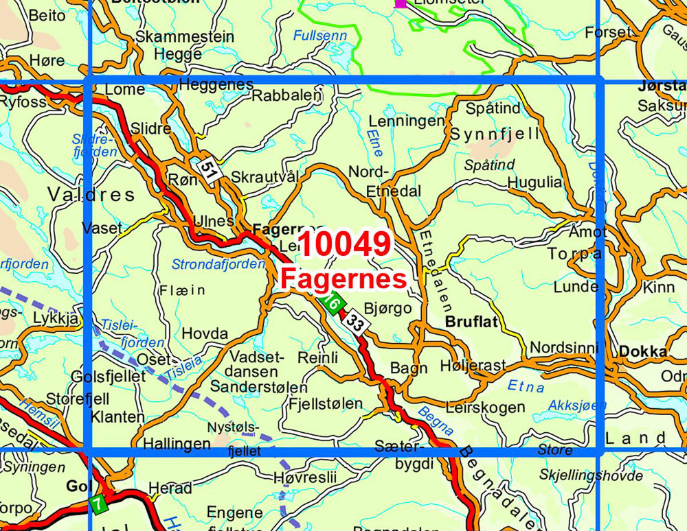 Fagernes 1:50 000 – Kart 10049 i Norges-serien