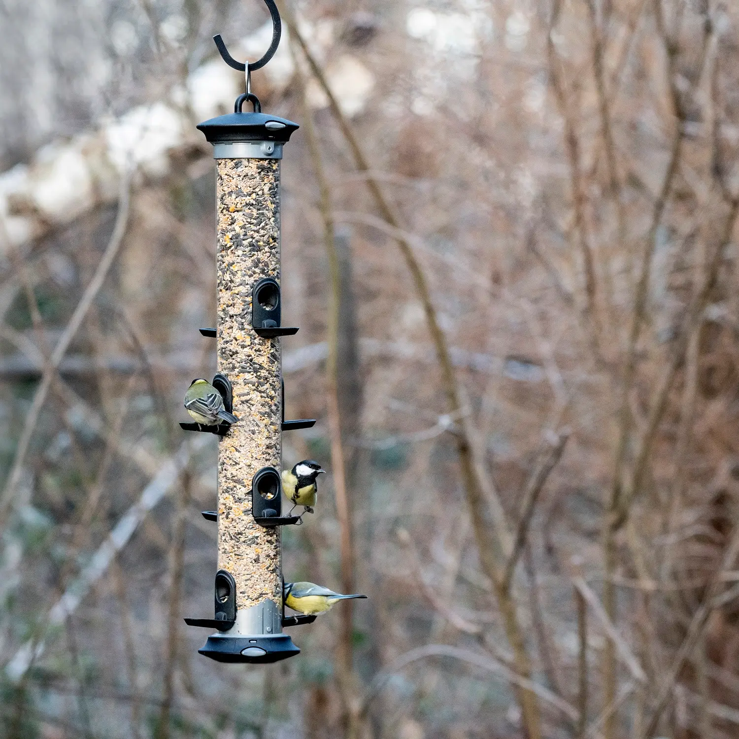 Materen har 8 fôringsporter, portene er designet for å sikre at fuglene har maksimal tilgang til maten som tilbys. Den forskjøvede avstanden mellom portene gir også hver fugl et klart fôringsområde som resulterer i mer hygienisk fôring. Materen har også de enkle, men svært effektive sitteringene, disse ringene sikrer at fugler kan spise i sin naturlige fôringsposisjon – vendt fremover. Fôring i denne posisjonen gjør at fuglene kan se etter rovdyr, noe som øker selvtilliten deres, og dermed kan de bli værende ved materen lenger.