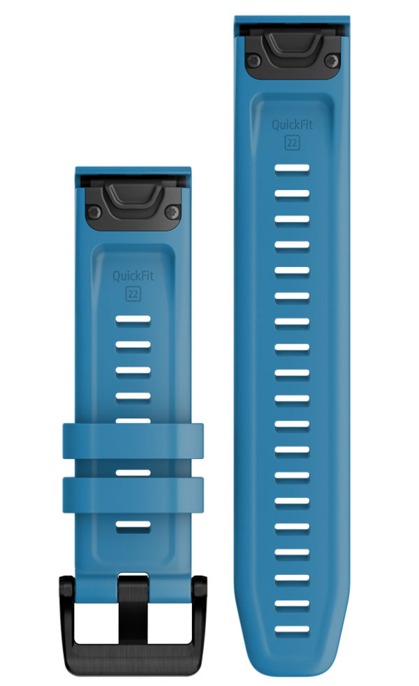 Garmin QuickFit 22-klokkeremmer, Himmelblå silikon med anordning i sort rustfritt stål