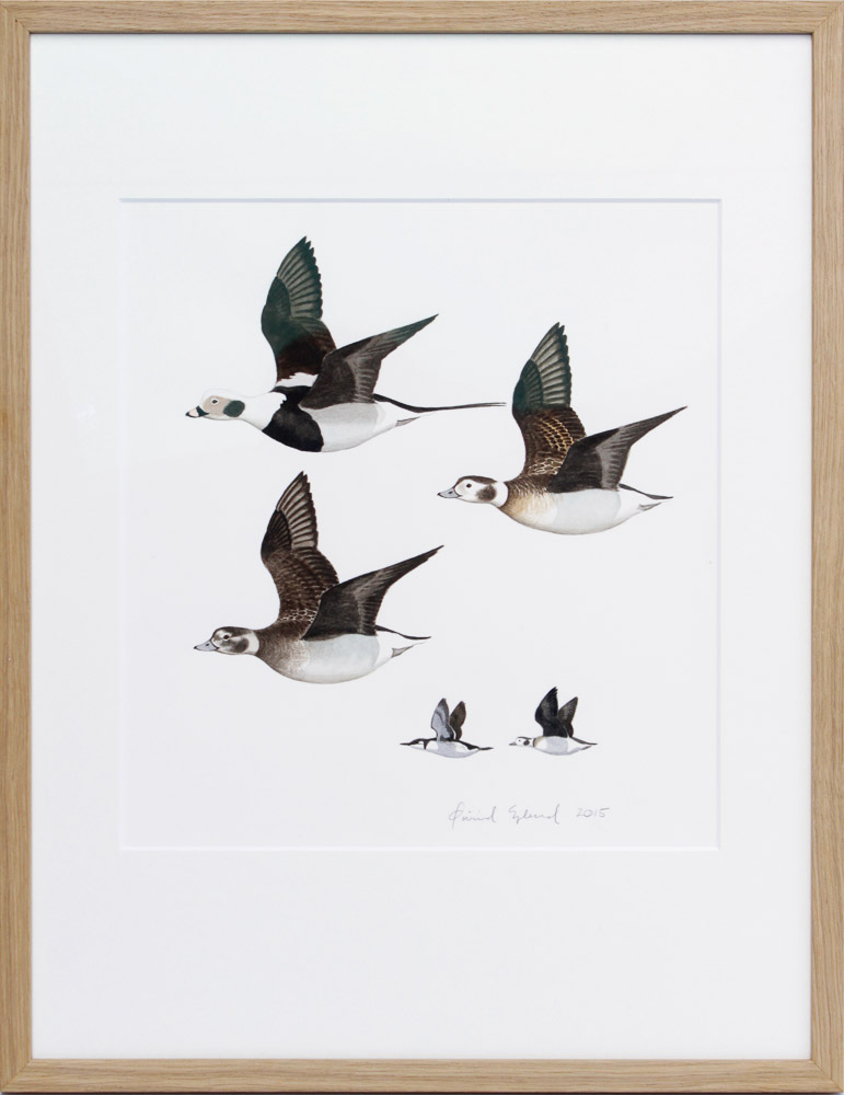 Havsule, gråmåke og joer – Original akvarell av Øivind Egeland