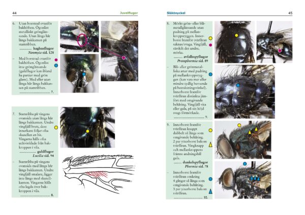 Boken Juvelflugor presenterer fluer i familiene spyfluer, parasittiske fluer og døgnfluer med blå eller grønn glans. Vi har kalt disse vakre insektene juvelfluer. Her er 48 arter beskrevet med identifikasjonsnøkler for å hjelpe hvis du har funnet en av disse fluene, og vil vite hvilken art det er.