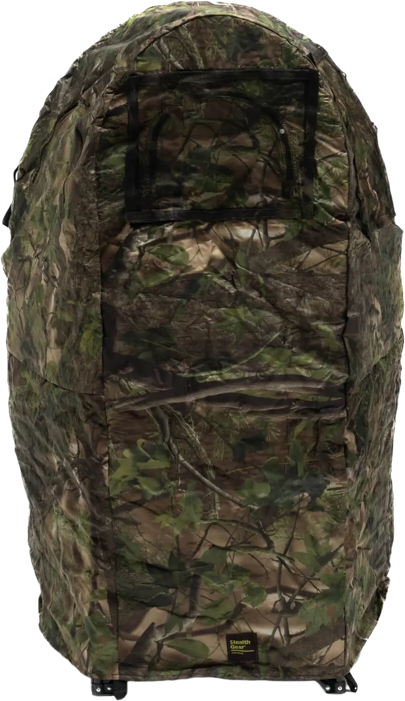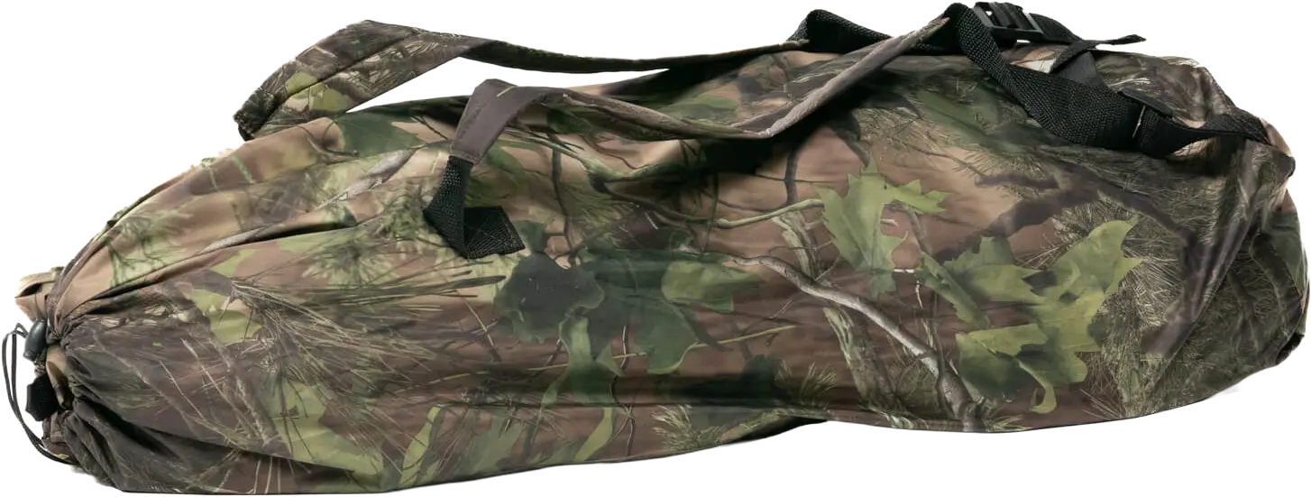 The tent fabric is well camouflaged at the outside, and black coated on the inside to make sure it’s as dark as possible inside. You’ll have enough space for yourself and of course your gear. Place your bag beneith you on the floor.
