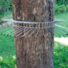 Disse metallbåndene festes rundt trær for å hindre katter i å klatre opp i trærne for å komme til kasser og reir. Har treet liten diameter så må en sette to bånd rett over hverandre for å øke beskyttelsen.