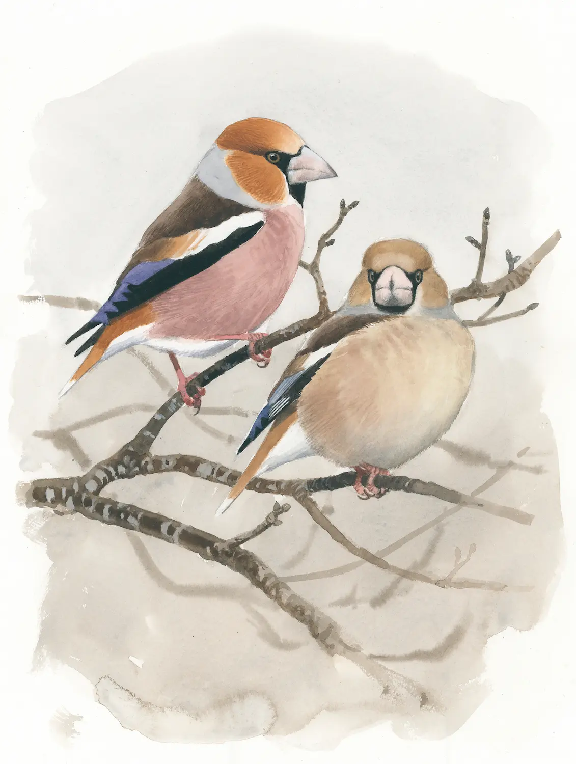 Gråspurvpar – Original akvarell av Øivind Egeland