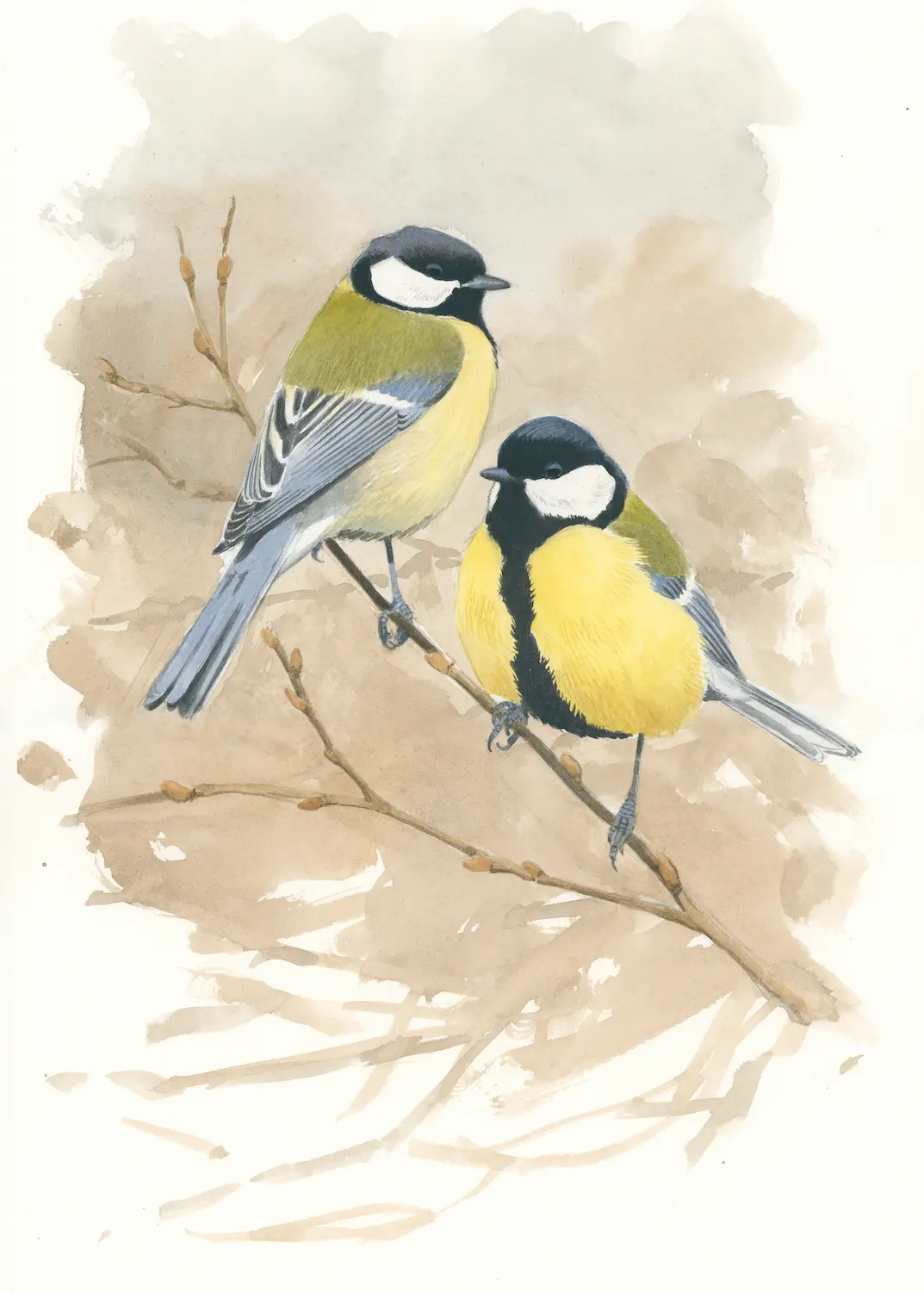 Kjøttmeispar – Original akvarell av Øivind Egeland