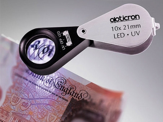 Lupeserie med innebygd LED- og UV-lys. LED-lyset sikrer deg en lys gjengivelse av objektet i svakt lys eller når du selv skygger for objektet. UV-lys gir deg anledning til å se fluorescerende objekter/områder på frimerker, pengesedler, planter, stein, tøy etc.