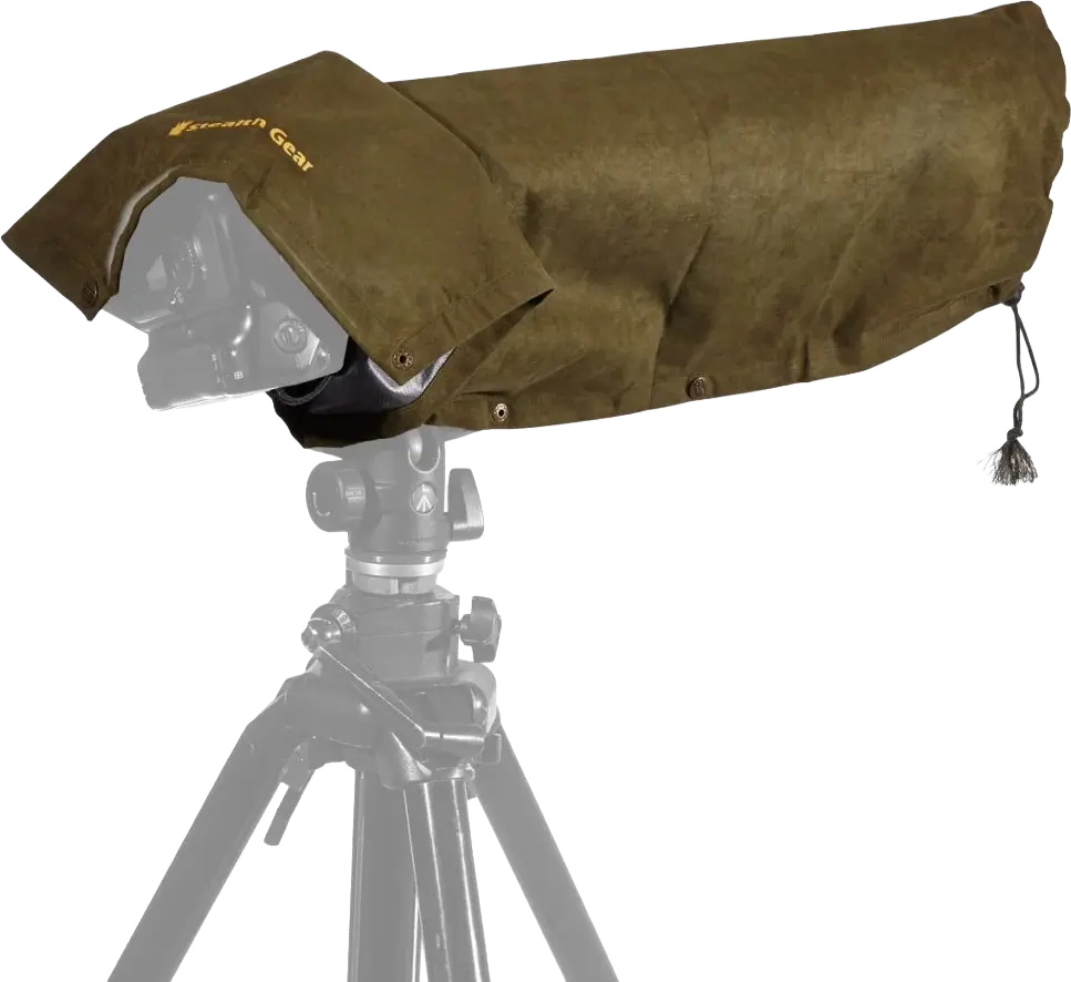 Stealth Gear rain covers are easy to attach to your camera and lens. In just seconds, your gear is protected from rain, snow, dust etcetera. Moreover, this cover further camouflages your equipment with its natural dark green colour.