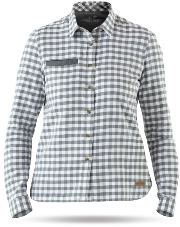 Denne skjorten laget av ren økologisk bomull føles veldig behagelig å ha på seg. Det grå, grønne og hvite rutemønsteret er et ideelt utseende for hverdagsbruk eller utflukter i naturens verden.
